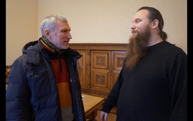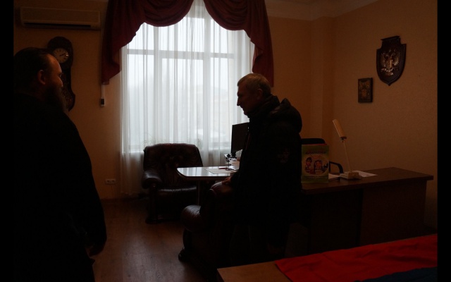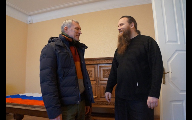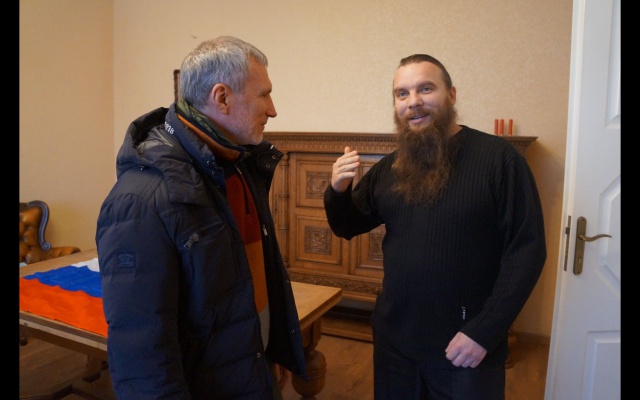 Сегодня, 30 января, председатель партии "РОДИНА", депутат Госдумы Алексей Журавлёв в Донецке с отцом Никоном, представляющим общественную организацию "Народное Единство".