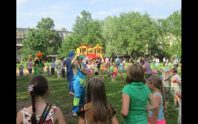 Детвора сразу оценила детскую площадку по достоинству, заполонив её задолго до начала праздника. Однако утомительное ожидание быстро сменилось радостным настроением и улыбками, когда во дворе появились весёлые клоуны Вареник, Клёпа и Бяка. После  серии игр и развлечений  детвора переместилась в центр двора к новой площадке. Дмитрий Игнатов поприветствовал ребят и их родителей, поблагодарив их за активность – жители домов приняли участие в софинансировании проекта.