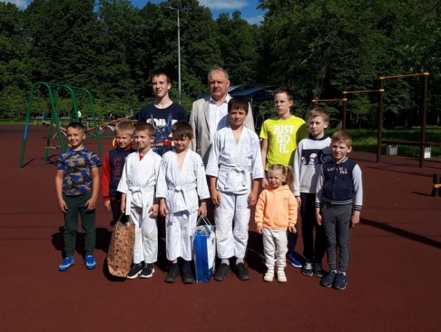 После тренировки Владимир Борисович поздравил ребят с прошедшим Днем защиты детей и вручил подарки – спортивную экипировку, необходимую для занятий рукопашным боем.