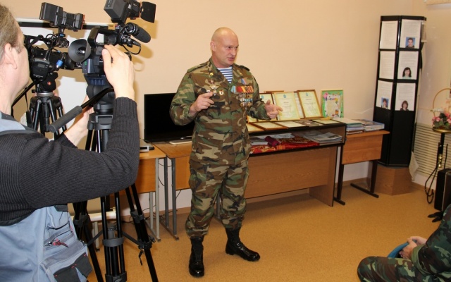 "Мы все выпускники Рязанского высшего воздушно-десантного командного училища, которому за заслуги в подготовке офицерских кадров Распоряжением Правительства РФ № 245 от 17 февраля 2018 года было присвоено почетное наименование "гвардейское". В послужном списке училища – 53 Героя Советского Союза, 82 Героя Российской Федерации, тысячи кавалеров боевых орденов. История нашего училища тесно связана с этой землей, с этим школьным музеем, экспонаты которого хранят память о первых выпускниках парашютно-десантного училища, героических офицерах ВДВ. Поэтому мы с особым чувством ответственности проводим здесь уроки мужества, чтобы воспитать у ребят патриотические убеждения, сформировать активную гражданскую позицию, подготовить к армейской службе и, возможно, выбору военной профессии", - рассказал в телевизионном интервью член Политсовета партии "РОДИНА", член Регионального Штаба ОНФ в Самарской области, доверенное лицо кандидата на должность Президента Российской Федерации В.В. Путина по Самарской области Вадим Нуждин.